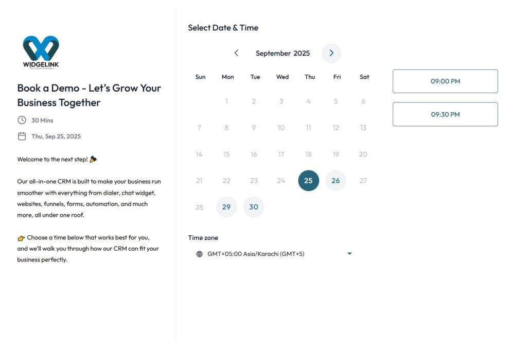 Let customers book appointments anytime with your branded booking page.
